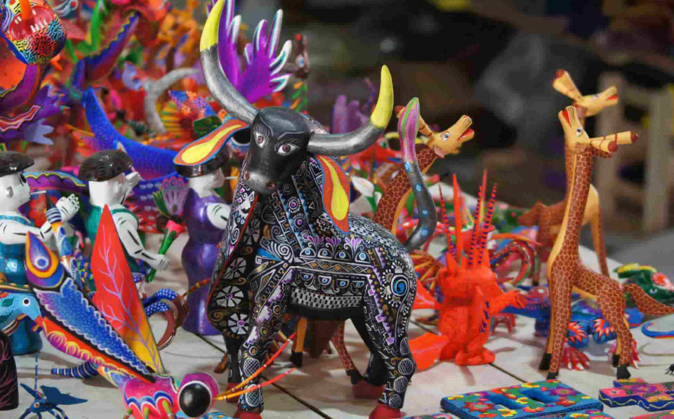 Ambos lugares conocidos por la producción de alebrijes, las manos de sus artesanos tallan fantásticas creaciones en madera de copal.