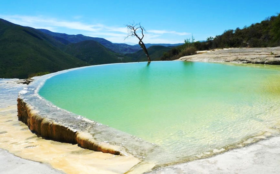 Un sistema de cascadas petrificadas, formadas por carbonato de calcio. Ofrece una vista inolvidable.